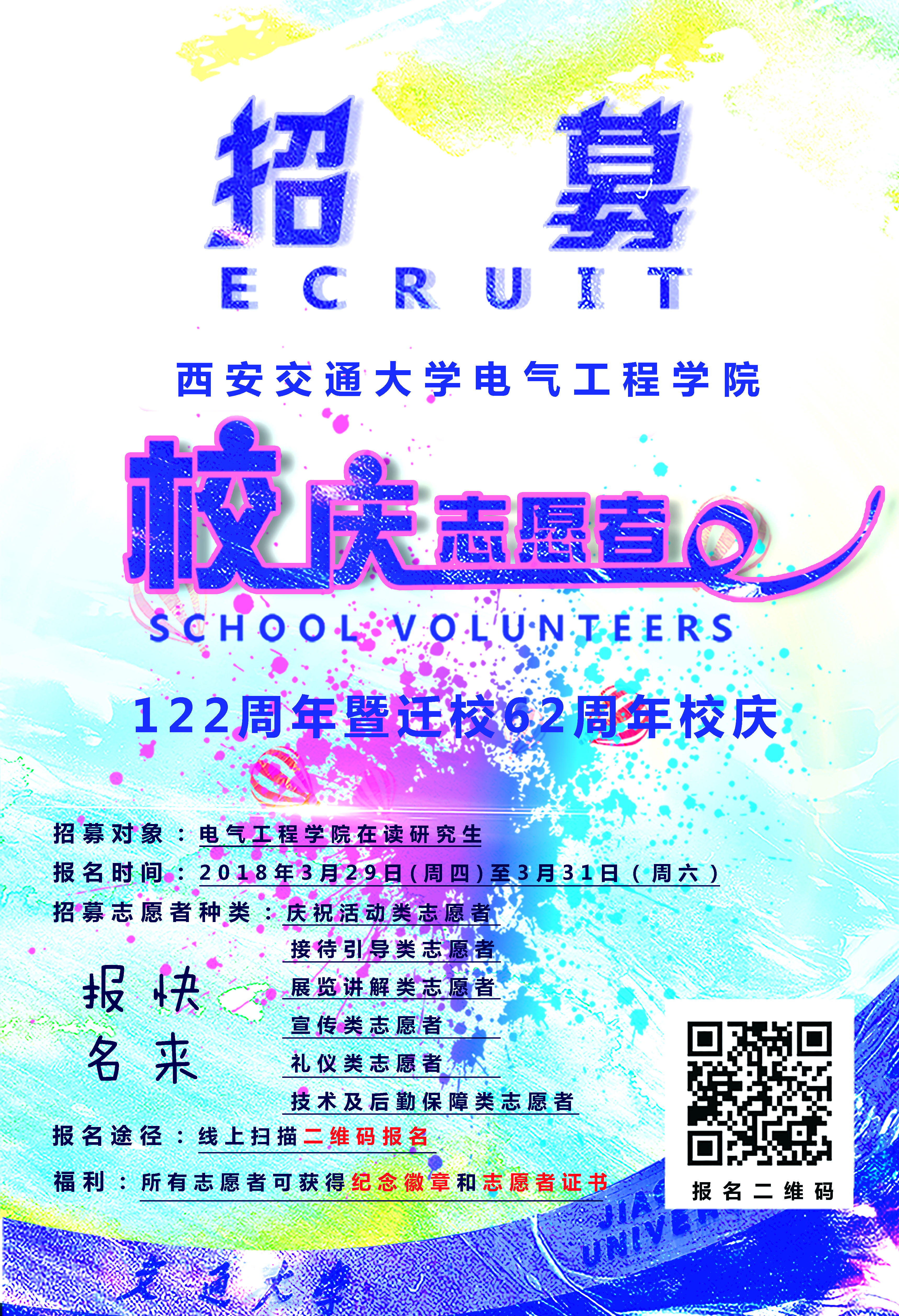 488-365.com的前身是创建于1908年的南洋公学的电机专科,是我国高等教育创办最早的电工学科。62年前,交通大学响应党和国家号召举校西迁,从黄浦江畔来到黄土高原,投入到国家大西北的建设中来。电气工程学院作为最早西迁的院系之一,在这片贫瘠的土地上生根发芽,茁壮成长。电气学子无愧于时代的需求和祖国的重托,潜心科研,默默奉献,弘扬“天地交而万物通 上下交则其志同”的“交通”大学精神。经过几代人坚持不懈的努力,如今的电气工程学院再次走向辉煌,在教育部双一流建设的学科评估中,西安交大电气工程学院成功入选“A+”级学科行列。 弦歌不辍,薪火相传。今天,在建校122周年暨迁校62周年校庆来临之际,在双一流大学建设的攻坚时期,电气工程学院的每一位学子都应当传承前人精神,肩负历史使命,为实现西安交大的二次辉煌而不懈奋斗。在新的时期里,我们要按照习总书记的指示,弘扬不怕苦、不怕累的西迁精神,作为西迁精神的传人,为交大西部科技创新港的创建贡献自己的力量;在新的时期里,我们要高举爱国主义、集体主义、英雄主义和乐观主义旗帜,凝聚智慧和力量,积极献身国家的科研事业;在新的时期里,我们要发扬主人翁意识,以斗志昂扬的姿态走向世界,在世界高等教育的舞台上发出自己的声音。 值此西安交大校庆之际,我们向全体电气工程学院学生发出倡议:让我们积极投入到西安交大建校122周年暨迁校62周年的校庆志愿服务中,奉献自己的力量与智慧,用自己的实际行动来共同推动校庆工作的顺利开展,向全校师生展现电气工程学院学子勇于担当,乐于奉献的优良品质。同学们,新的时期,让我们共同努力,以拳拳之心回报母校,共同谱写交大美好的明天! |