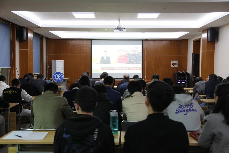 2017年10月25日上午11点,电气学院师生于院北会议室共同观看第十九届中央政治局常委同中外记者见面会。此次活动出席人员有电气学院常务副院长李盛涛、电气学院党委副书记宋杰及各教研室师生党员代表们。